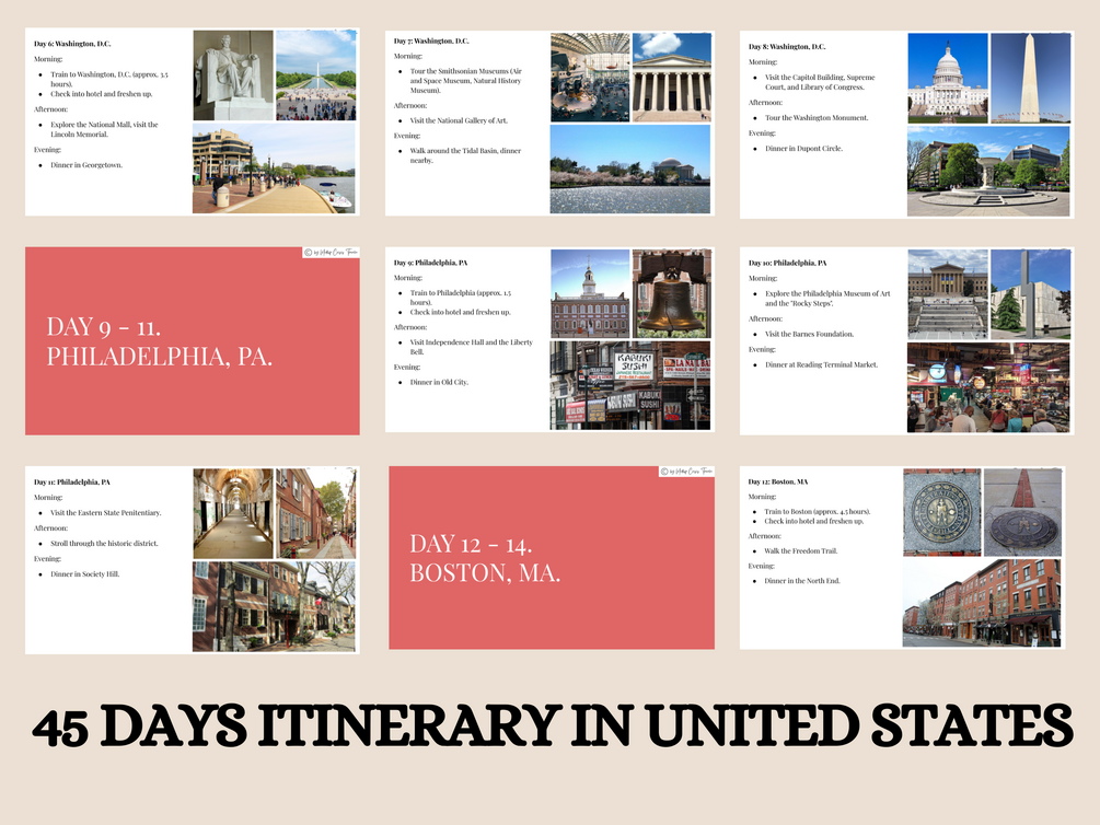 You'll get a detailed PDF file - 45-Day Travel Itinerary in United States
