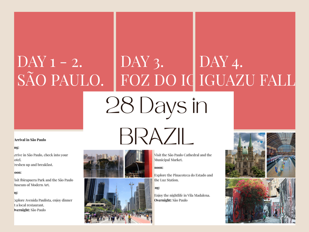 You'll get a detailed PDF file - 28-Day Travel Itinerary in Brazil