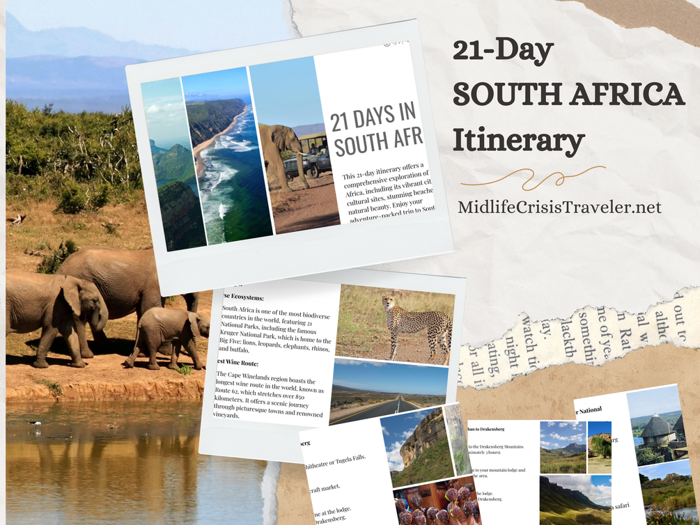 Experience the diverse beauty and rich culture of South Africa with our 21-day travel itinerary. This detailed PDF guide covers must-see destinations such as Cape Town, Johannesburg, Kruger National Park, Garden Route, and the Drakensberg Mountains. Perfect for solo travellers, couples, and families, our itinerary offers daily schedules, insider tips, and essential travel information for an unforgettable African adventure. Ideal for planning a seamless and stress-free trip, this digital download is your ultimate guide to exploring South Africa.